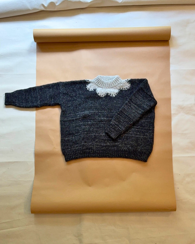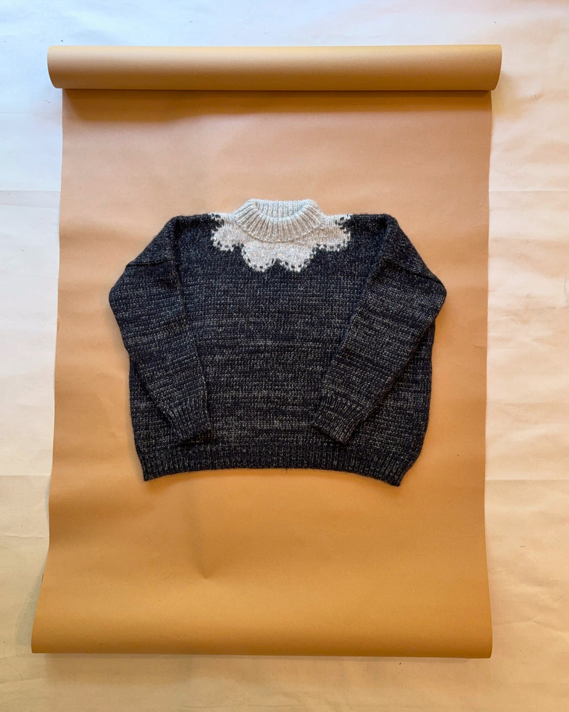 The marled charcoal and ivory yarn adds depth and richness, while the relaxed, wide pullover silhouette makes it the perfect cozy/cool addition to your sweater collection.