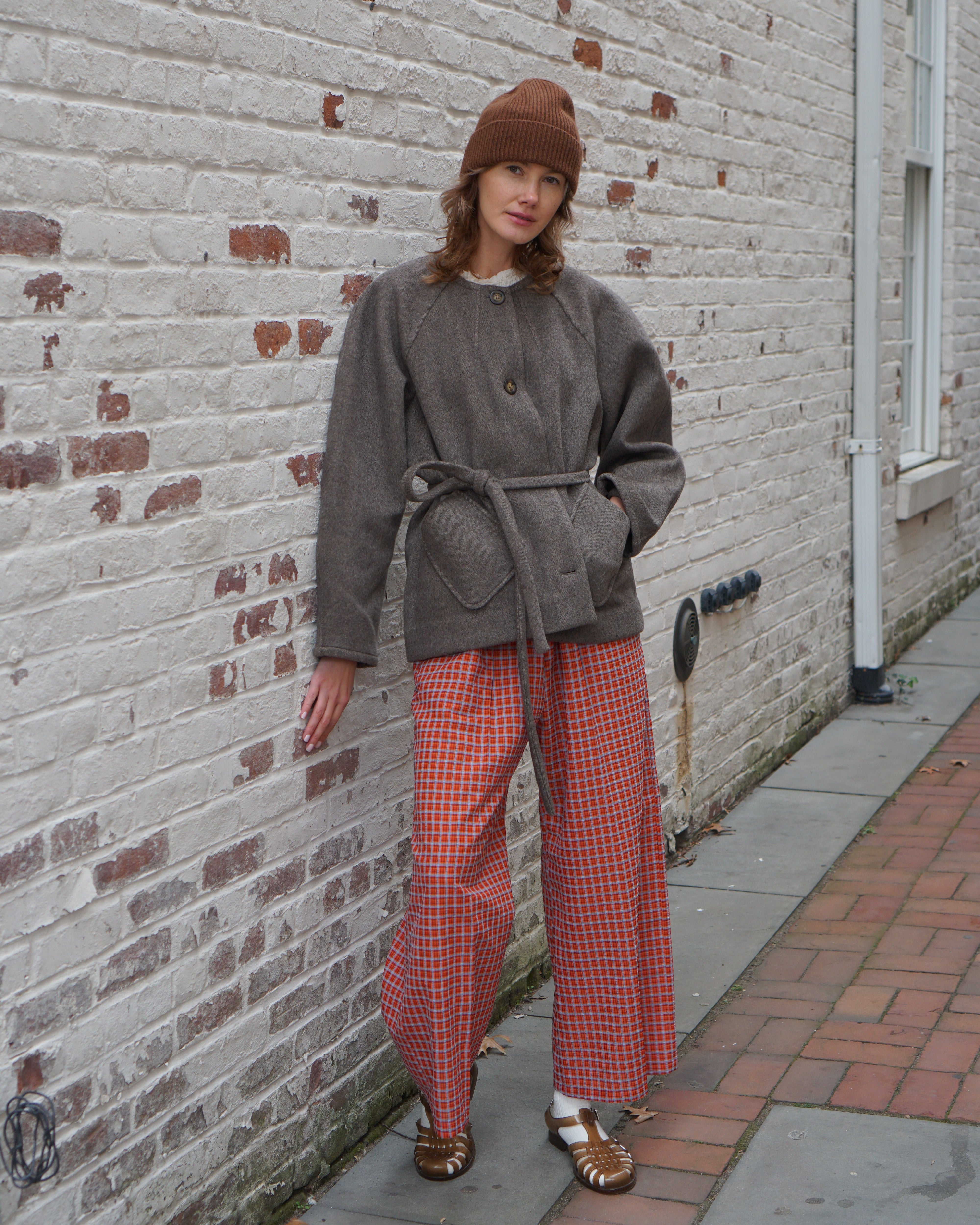 Semi sheer yarn dyed plaid in a crisp organdy feels elevated and fun in bright Persimmon . Cut in our effortless pull on Sunday pant with pockets and a wide leg. Easy and stylish for every day of the week.