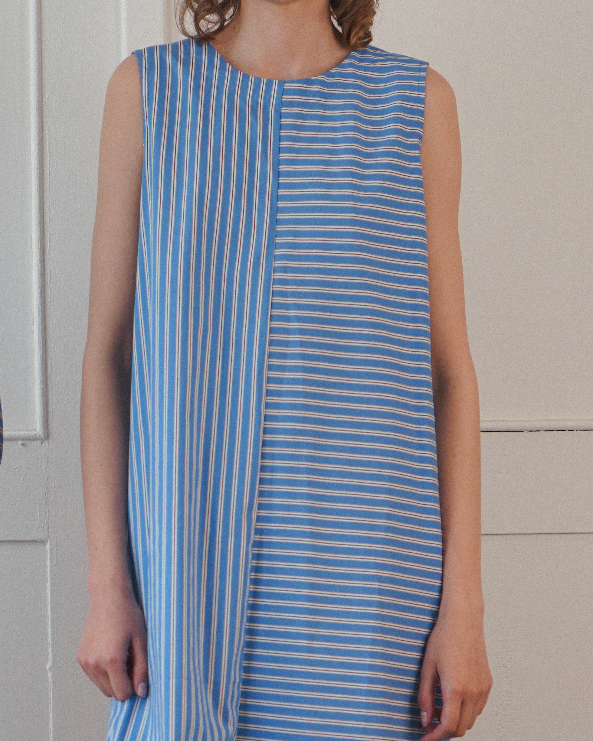 Reversible Uma dress in Blue Striped Poplin Sample