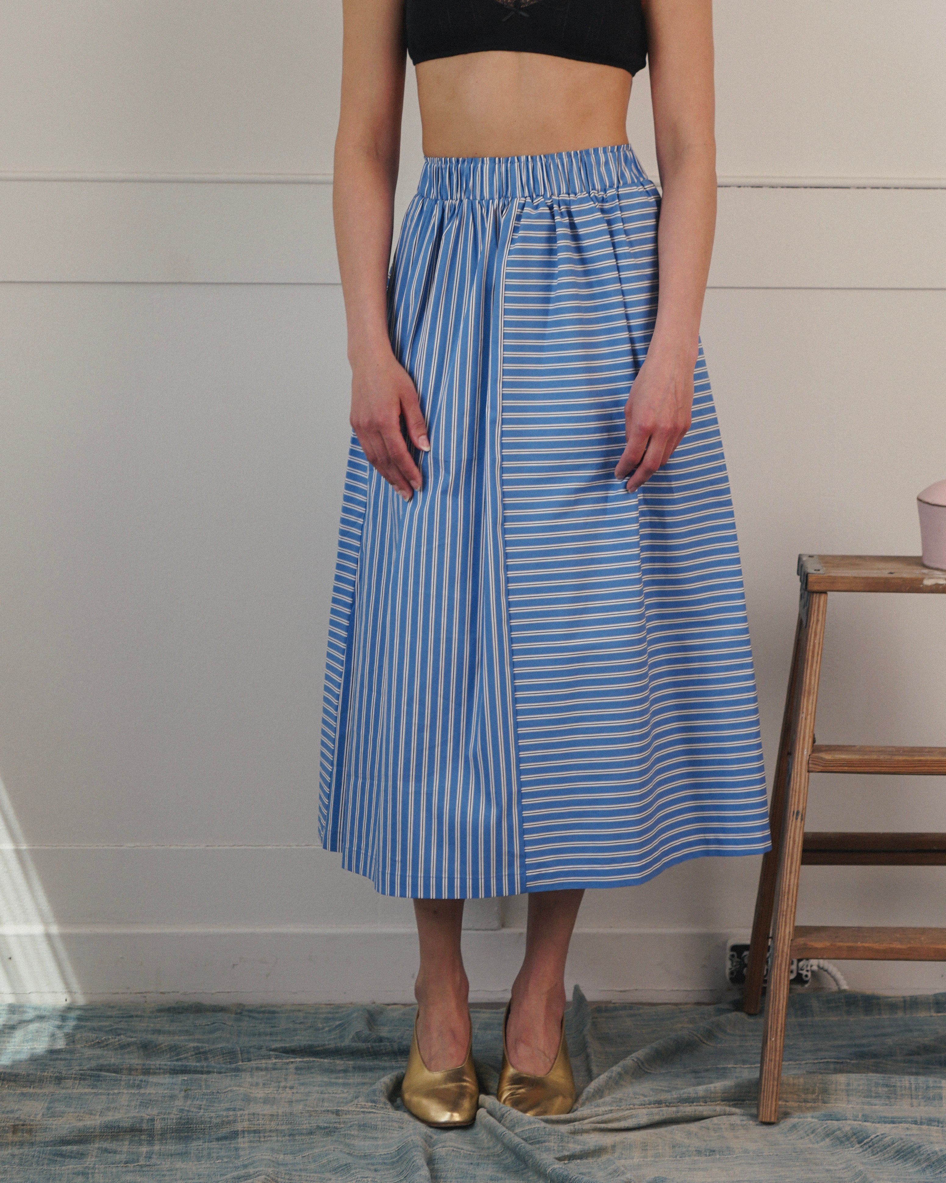 Sunday skirt in Blue Striped Poplin Sample