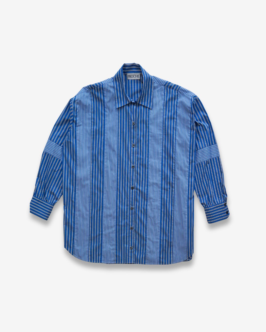 The “slash and spread” shirtdress comes from a pattern making technique used to create this unique take on a classic style. We opened up a traditional shirtdress by adding contrasted fabrics to create an exaggerated and oversized version of the original.