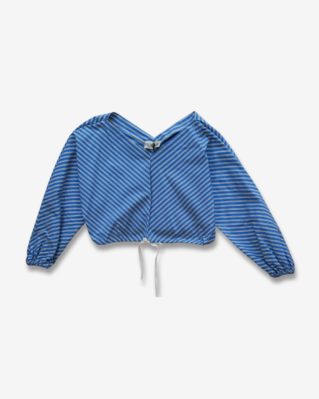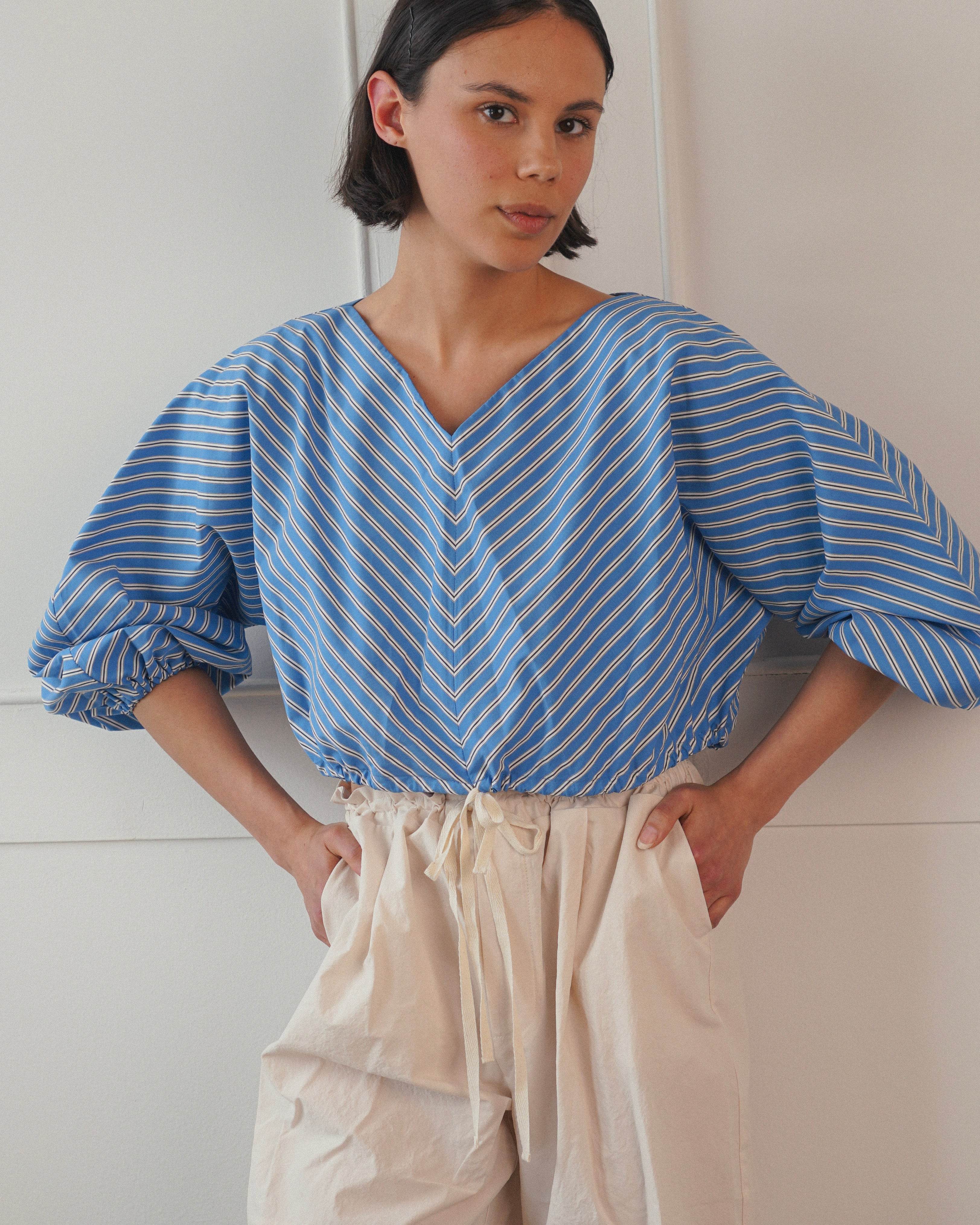 Blue pinstripe Poplin Drawstring Adjustable Bubble Top Sample